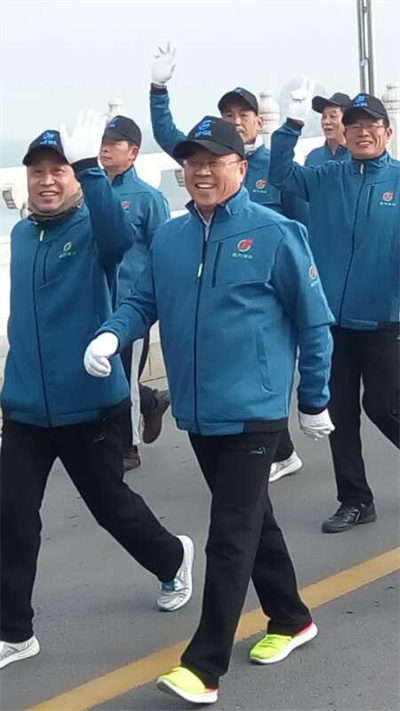 段董事長和四方冬泳俱樂部健兒們在行進途中