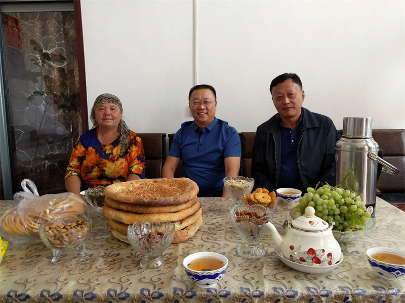 女主人拿出熱騰的香馕、新鮮的葡萄等招待和感謝遠道而來的客人——江蘇四方鍋爐段緒強董事長。