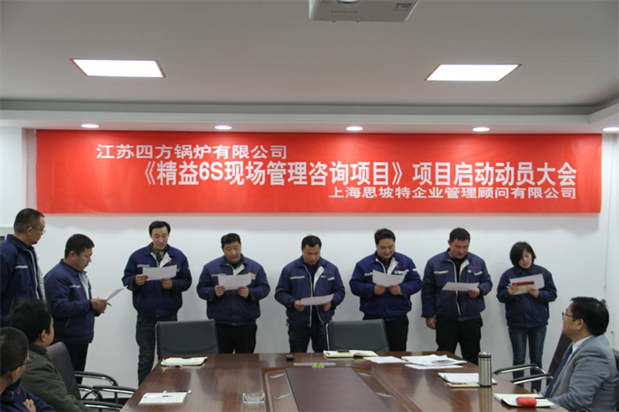 1月15日下午,江蘇四方鍋爐《精益6S現場管理咨詢項目》項目啟動動員大會在公司綜合樓301會議室隆重召開。來自公司生產、技術、供應、質管及企管等各部門主要負責人和部分管理骨干人員參加會議,上海思坡特企業管理顧問有限公司咨詢團隊、公司總經理葉楓參加啟動儀式。人力資源企管部部長任磊主持了啟動儀式。