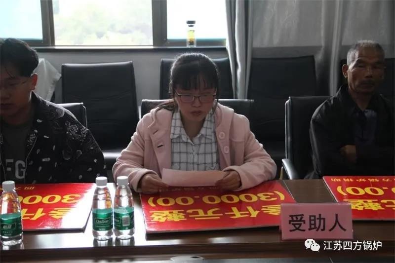 隨后,受助學生代表、被南京傳媒學院錄取的魏莊村孤兒戚明池同學,代表受助學生發表受助感言。她表示,要心懷感恩,愛黨愛國;堅定信心,刻苦學習;立志成才,傳遞愛心,以優異的學習成績,早日成為有用之才,反哺家鄉,回報社會。決心在自己將來有能力的時候,將四方鍋爐的這一善舉、這份愛心接力延續,讓更多的人受益!