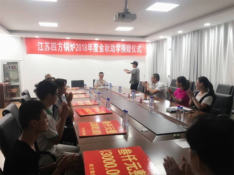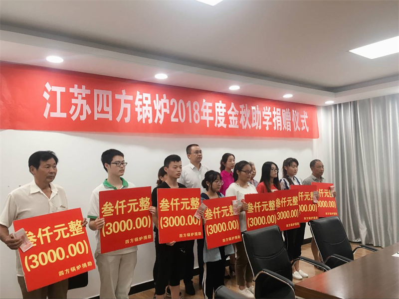 8月31日,江蘇四方鍋爐有限公司(簡稱:四方鍋爐)2018年度金秋捐資助學活動儀式在四方鍋爐總部如期舉行。當日,四方鍋爐出資,總經(jīng)理葉楓向來自銅山區(qū)柳新鎮(zhèn)蘇家村的武倩楠等其他村的9名貧困學生或家長代表每人資助3000元助學金。