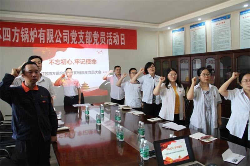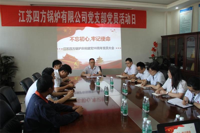 繽紛仲夏,激情似火。黨的98周年生日來臨之際,中共江蘇四方鍋爐有限公司黨支部隆重舉行慶祝大會,共同緬懷黨的光輝歷史和豐功偉績,進一步激勵公司全體黨員及入黨積極分子不忘初心、牢記使命,繼往開來、奮勇前進。來自公司銷售、技術、生產、管理服務等崗位上的黨員代表參加了活動。